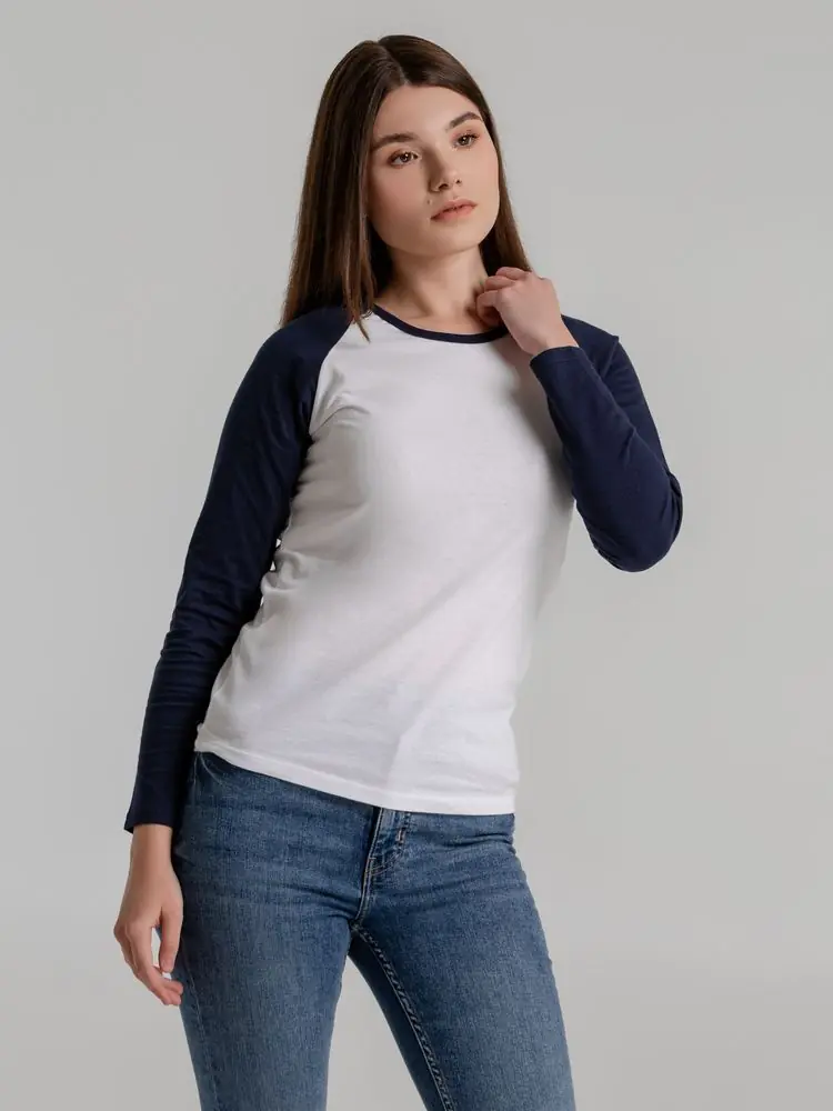 Футболка женская с длинным рукавом Milky LSL белая с темно-синим, размер S