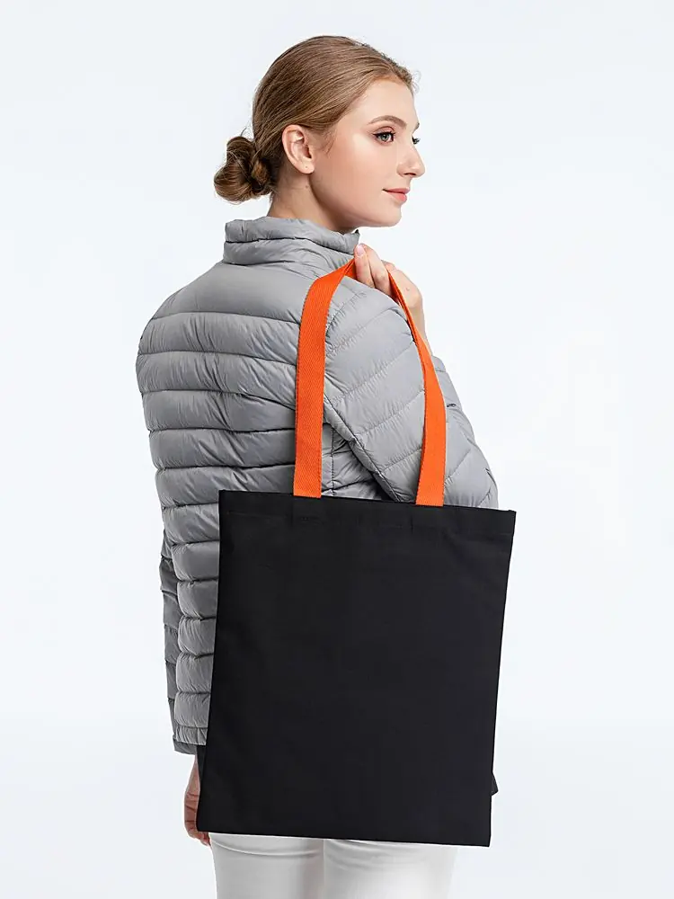 Холщовая сумка BrighTone, черная с оранжевыми ручками