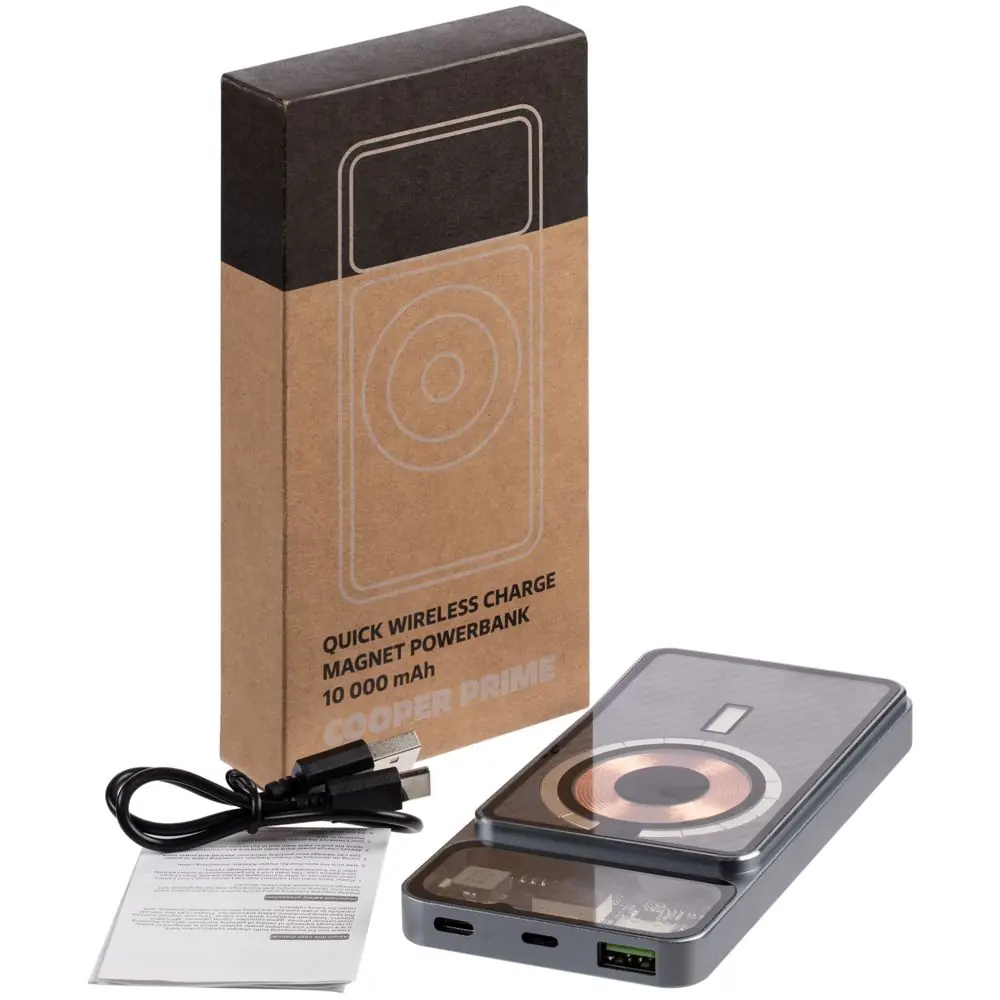 Магнитный беспроводной аккумулятор Cooper Prime 10000 мАч, темно-серый
