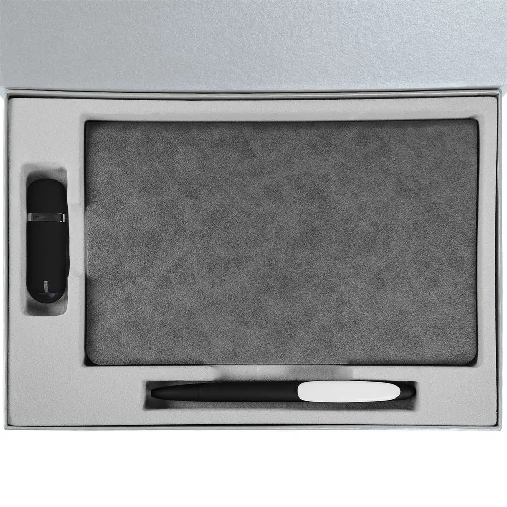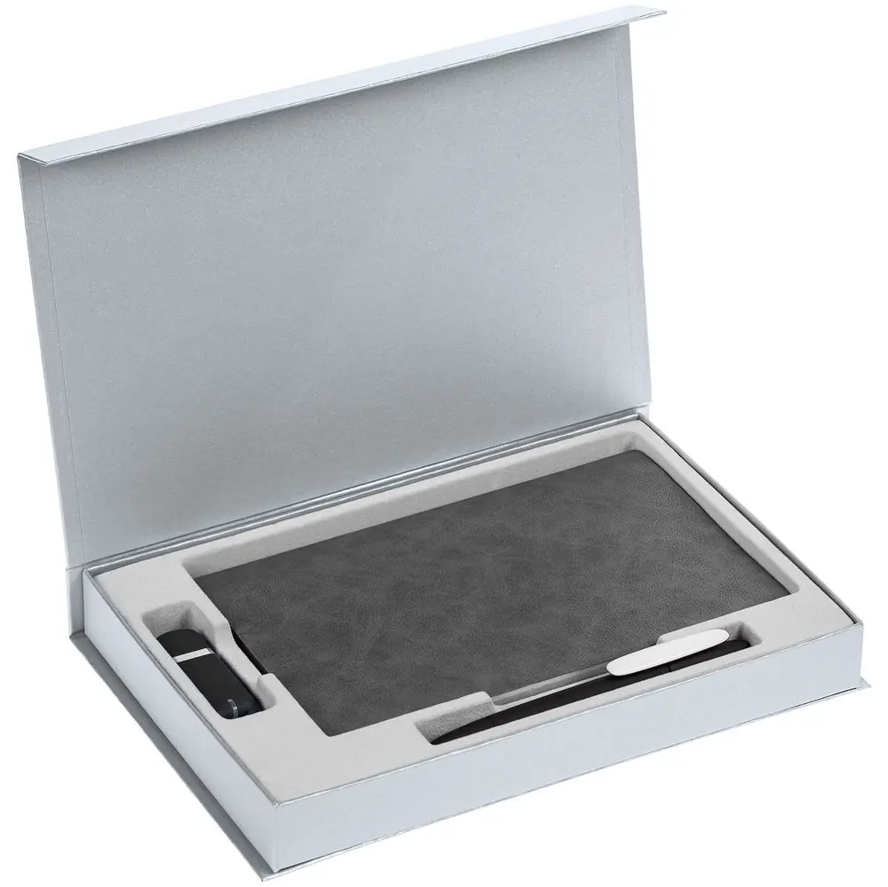 Коробка Silk с ложементом под ежедневник 13x21 см, флешку и ручку, ver. 2, серая