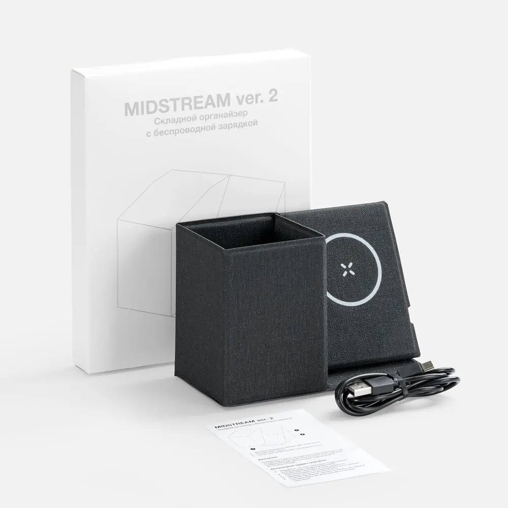 Складной органайзер с беспроводной зарядкой Midstream ver.2, серый