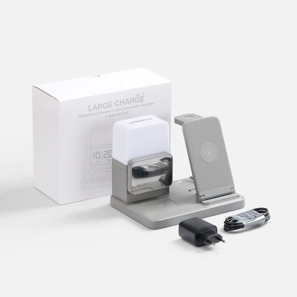 Зарядная станция с электронными часами и подсветкой Large Charge ver.3, серая